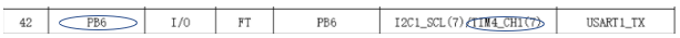 使用外设接口:选用TIM4的CH1通道,对应输出脉冲IO口为PB6。
