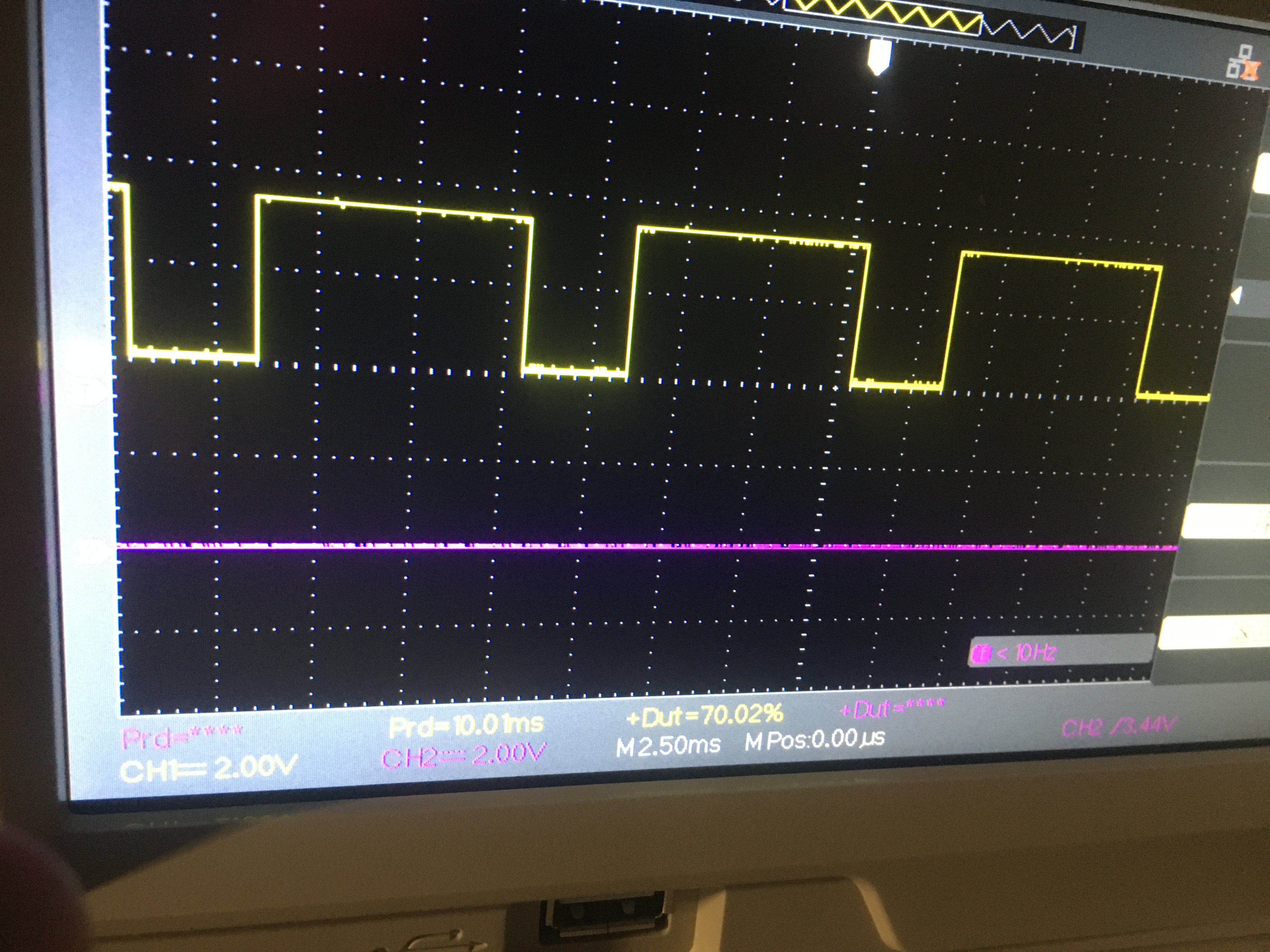 黄色的线是通道1 , 紫色是通道4.