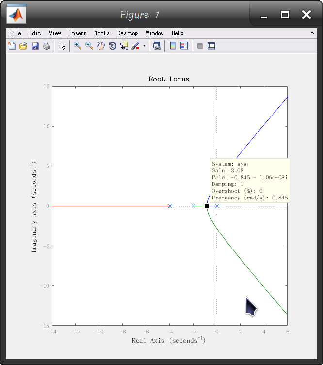 可以看到matlab绘制的图中,交汇点是-0.845,与书上的-0.85极其接近,可以认为是正确的。