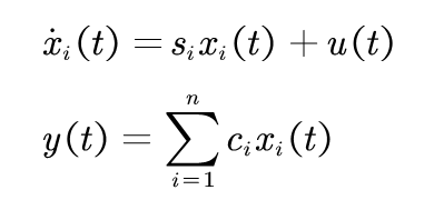 改写成矩阵形式,即可得到极点互异的约当规范形状态空间表达式: