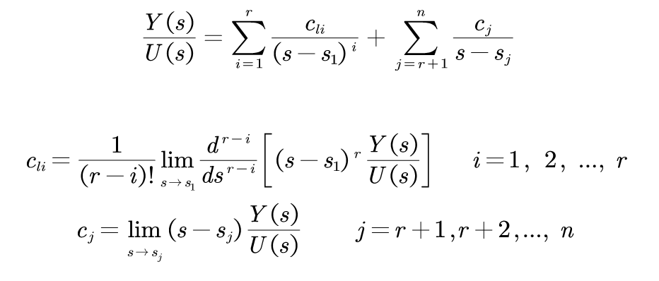 首先依然是将传递函分解为部分分式形式,然后再用留数法确定其系数: