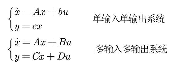 有如下所示的单输入单输出系统和多输入多输出系统的状态空间表达式:
