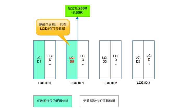 (1)当属于某个逻辑信道组的某个逻辑信道有上行数据待传输,并且这条逻辑信道的优先级高于目前任何逻辑信道组中任何逻辑信道的优先级,或者目前同个逻辑信道组中所有其它的逻辑信道均无待传数据,此时将触发一个 BSR,且该 BSR 叫做常规 BSR( Regular BSR)。如下面三种触发常规 BSR 的场景: