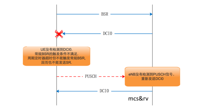 这个问题往往是由于 UE 在空口中没有检测到 DCI0 导致。 UE 通过 BSR 或SR 向 eNB ᨀ交上行 RB 资源申请后, eNB 会通过 DCI0 告诉 UE,为该 UE 分配的 RB 的位置和大小数目,但如果 UE 漏检了 DCI0, UE 就没有办法使用这些 RB资源。