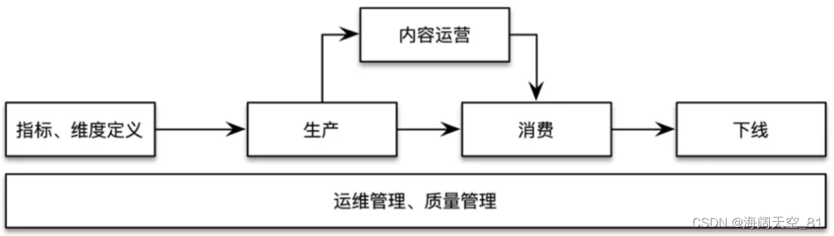 生命周期主要包含定义、生产、消费、下线四个阶段。针对整个生命周期要持续做指标运维、质量保障,同时为了提高指标数据复用度,降低用户使用成本需要做对应的数据运营工作。