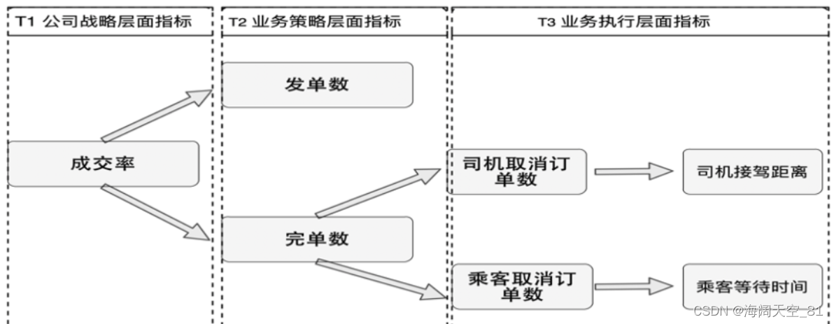 用于衡量公司整体目标达成情况的指标,主要是决策类指标,T1指标使用通常服务于公司战略决策层