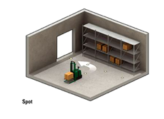 A geoguided AGV recognizes its environment to establish its location. Without any infrastructure基础设施; 基础建设;, the forklift(铲车) equipped with geoguidance technology detects and identifies columns, racks and walls within the warehouse. Using these fixed references, it can position itself, in real time and determine its route. There are no limitations on distances to cover number of pick-up or drop-off locations. Routes are infinitely modifiable.