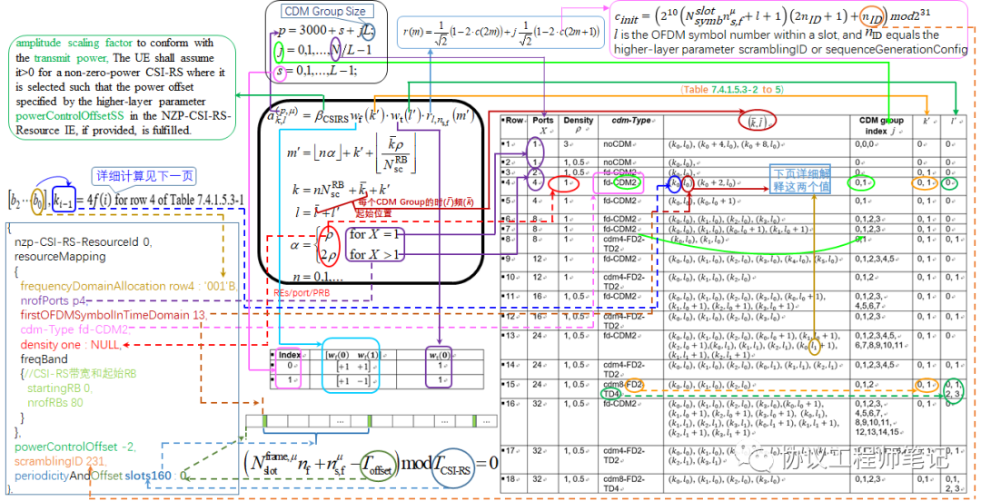 3) 右侧上面是CSI-RS序列(细节会有专门笔记解释)