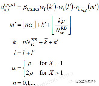 对于每个配置的CSI-RS, 协议规定序列r(m)按如下公式映射到RE的位置,