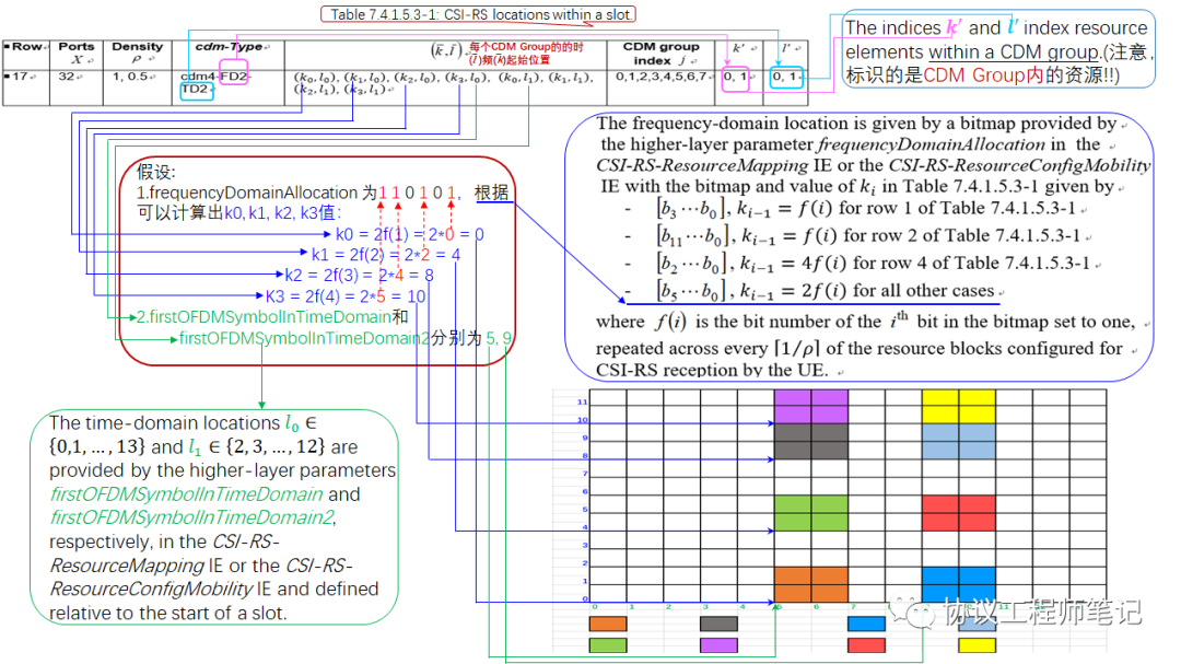 2) 右侧下面表格是各Port数的CSI-RS所有18种可能的位置