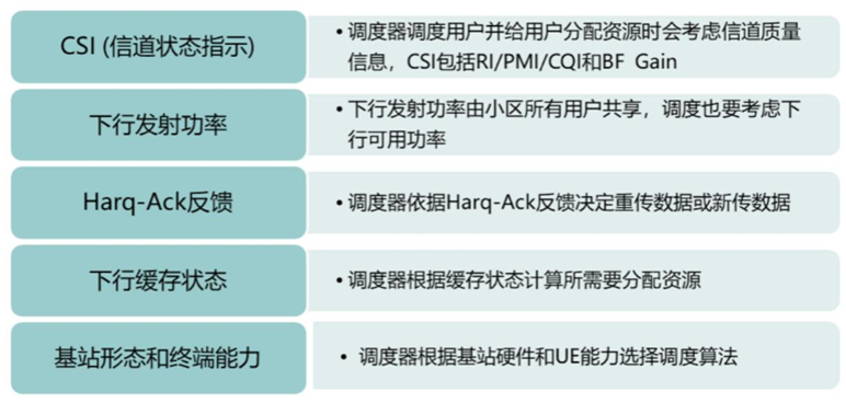调度器的基本功能是每个时隙为小区中的UE分配合适的系统资源,用于发送和接收数据。下行调度器位于NR系统的MAC层,主要为UE分配物理共享信道上的资源,并选择合适的MCS用于系统消息或用户数据传输。