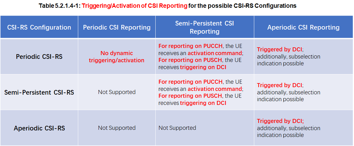 2)半持续性上报On Pucch:可以使用周期性和半持续性CSI-RS