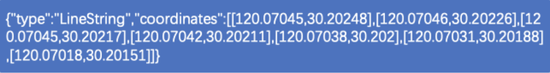 geobuf把数据压缩的那么小,还是涉及很多方面的优化,下面我将对个人认为压缩得最厉害的地方做一个介绍。以下是一段geojson,描述了一段LineString,geobuf并不是直接使用浮点数来存储这些数值,而是将数值做了一个计算,除第一组经纬度外,其他经纬度取与前面经纬度的差值,再将差值乘1e5(为了方便介绍,后面这一步暂时称为整型化,具体是乘1e5还是1e6或者其他值,取决于geojson本身的精度)。