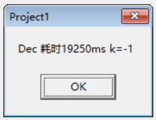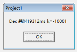 ShowMessage('Dec 耗时' + IntToStr(newTime - oldTime) + 'ms k='+IntToStr(k));