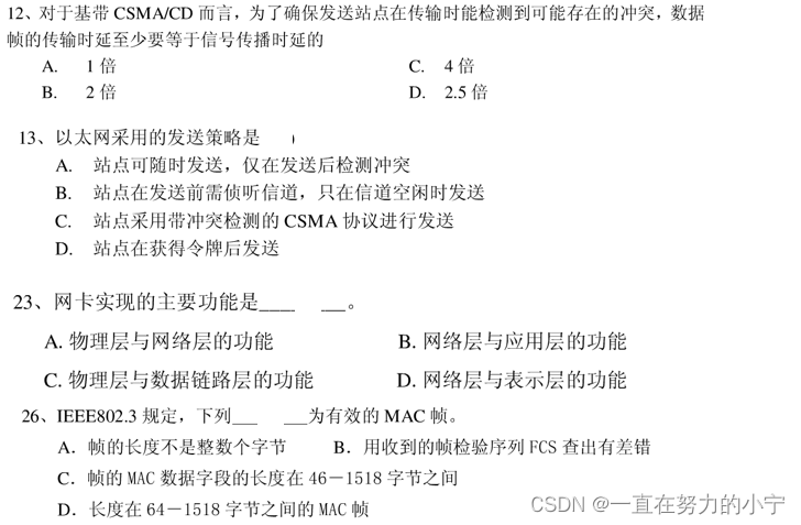 以上就是迷路含羞草最近收集整理的关于计算机网络原理第3章 数据链路层 (超全知识点+例题)3.1 使用点对点信道的数据链路层3.2 点对点协议 PPP3.3 使用广播信道的数据链路层3.4 扩展的以太网3.5 高速以太网例题讲解的全部内容,更多相关计算机网络原理第3章内容请搜索靠谱客的其他文章。