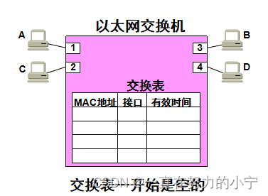 开始时,以太网交换机里面的交换表是空的。