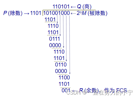 (2) 若余数 R ≠ 0,则判定这个帧有差错,就丢弃。 但这种检测方法并不能确定究竟是哪一个或哪几个比特出现了差错。 只要经过严格的挑选,并使用位数足够多的除数 P,那么出现检测不到的差错的概率就很小很小。