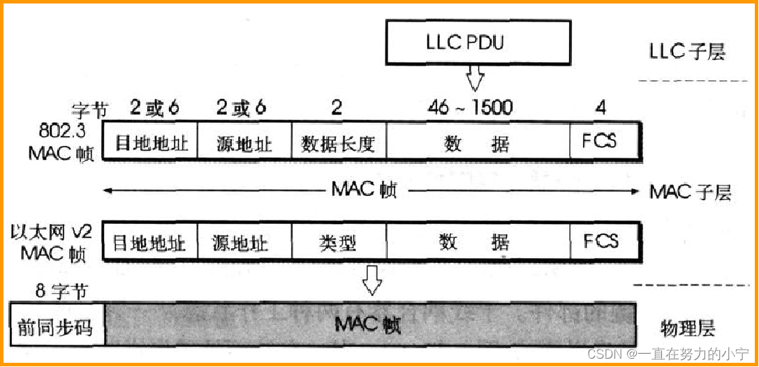 现在市场上流行的都是以太网V2 的 MAC 帧,但大家也常常称为 IEEE 802.3 标准的 MAC 帧。