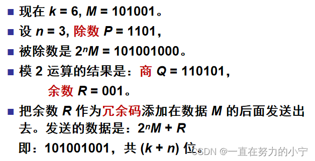 (1) 若得出的余数 R = 0,则判定这个帧没有差错,就接受(accept)。