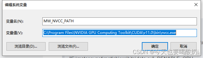 MW_NVCC_PATH:C:ProgramFilesNVIDIA GPU Computing ToolkitCUDAv11.0binnvcc.exe
