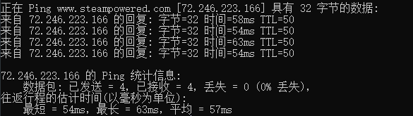 然而当我ping的是steam官网时,延迟一下子就上来了。