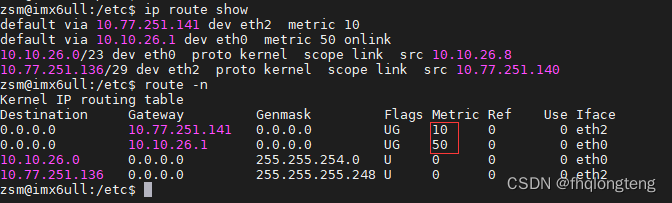 有线网卡eth0的跃点配置: