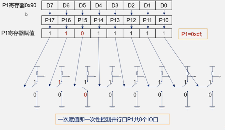 一次赋值即可一次性控制并行口P1共8个IO口