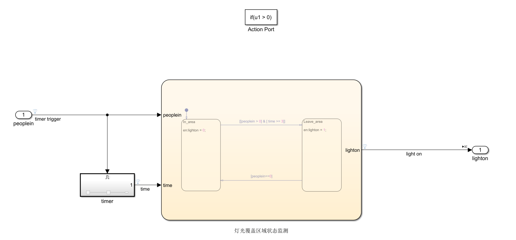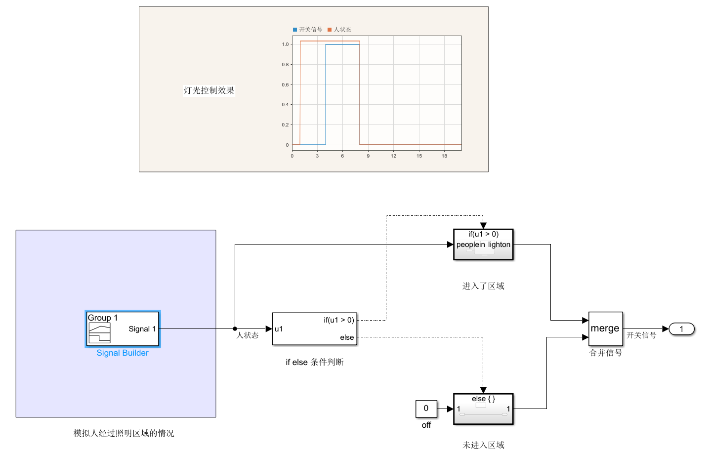 Simulink也可以表达If-else语义,通过一个感应灯控制模型来练习一下if-else的构建方法吧。