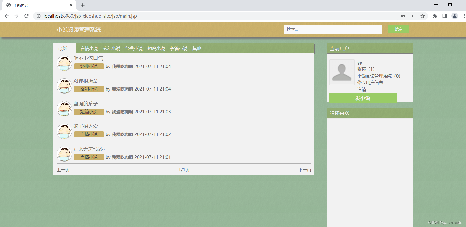4. 运行项目,输入localhost:8080/jsp_xiaoshuo_site