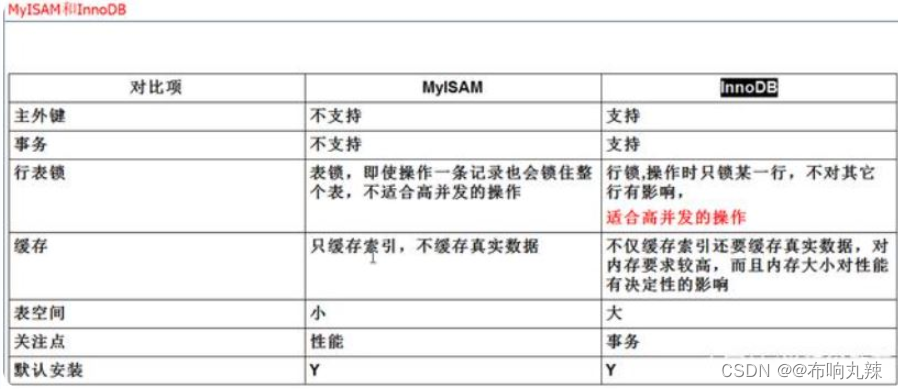 | 特点 | InnoDB | MyISAM | Memory |