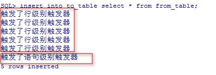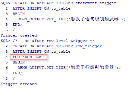 接着在to_table上建2个触发器,分别是语句级和行级,其中行级触发器有for each row的声明