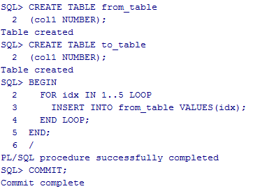 先建2张测试表from_table和to_table,from_table插入5条记录