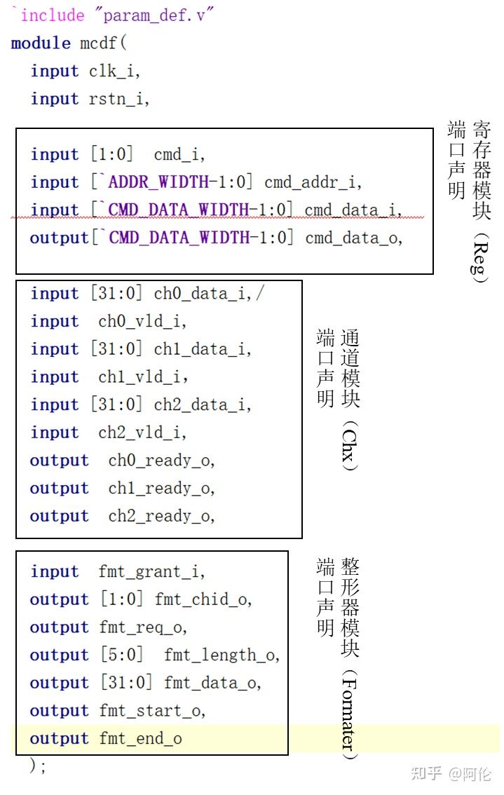 由顶层文件我们也可以看出仲裁器模块是MCDF整个系统的中间模块并没有外部接口。接下来我们先简略看一下各模块功能描述。