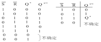 7.观察两种基本的R'S'触发器的表达式,输入变量中始终是包含有现态的,始终是三个输入变量。还有一点要明确地是,由于约束条件的存在,根据卡诺图来写表达式,牵涉到一个约束项卡诺图真值表的描写。