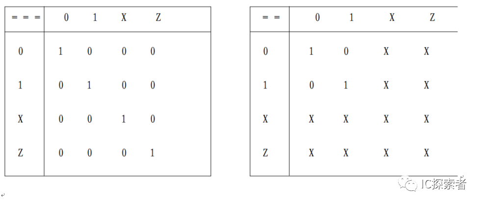==,判断相等,但是只能比较0、1,一旦出现X和Z结果就为X;