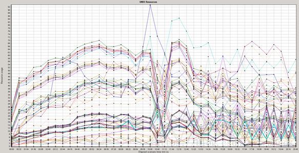 在场景设置中,由于并发量比较大,在加压过程、减压过程中注意根据前面的试运用过程,掌握每个虚拟用户的初始化时间,减压时间等,使产生的监控曲线更方便度量和处理。