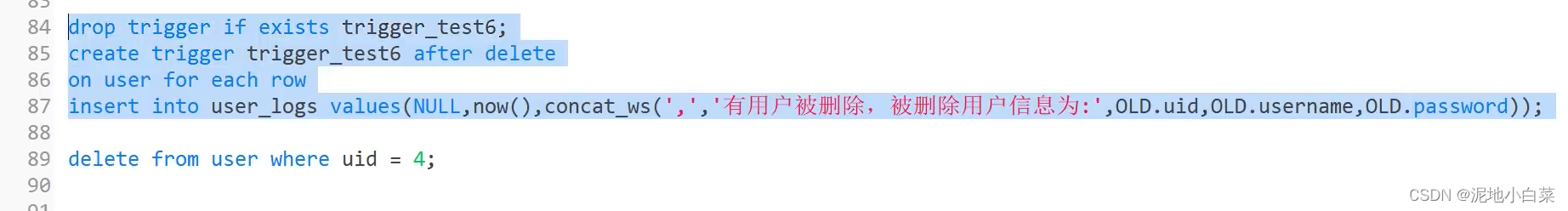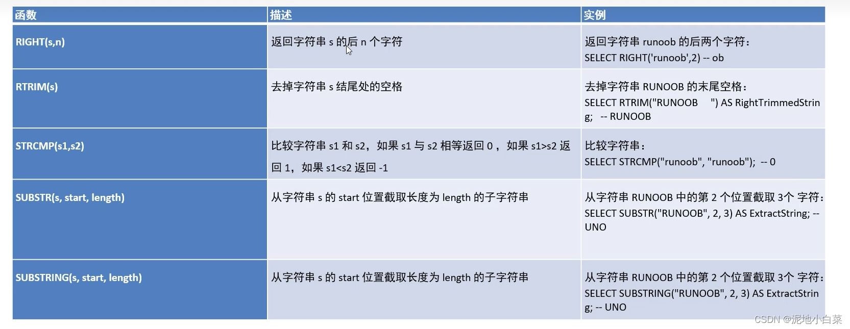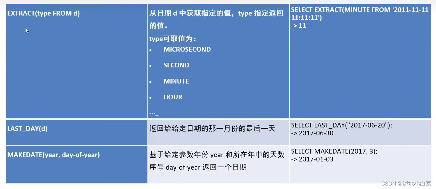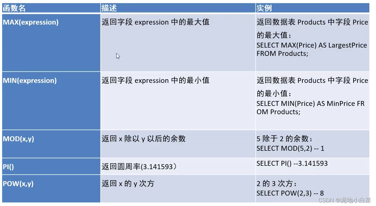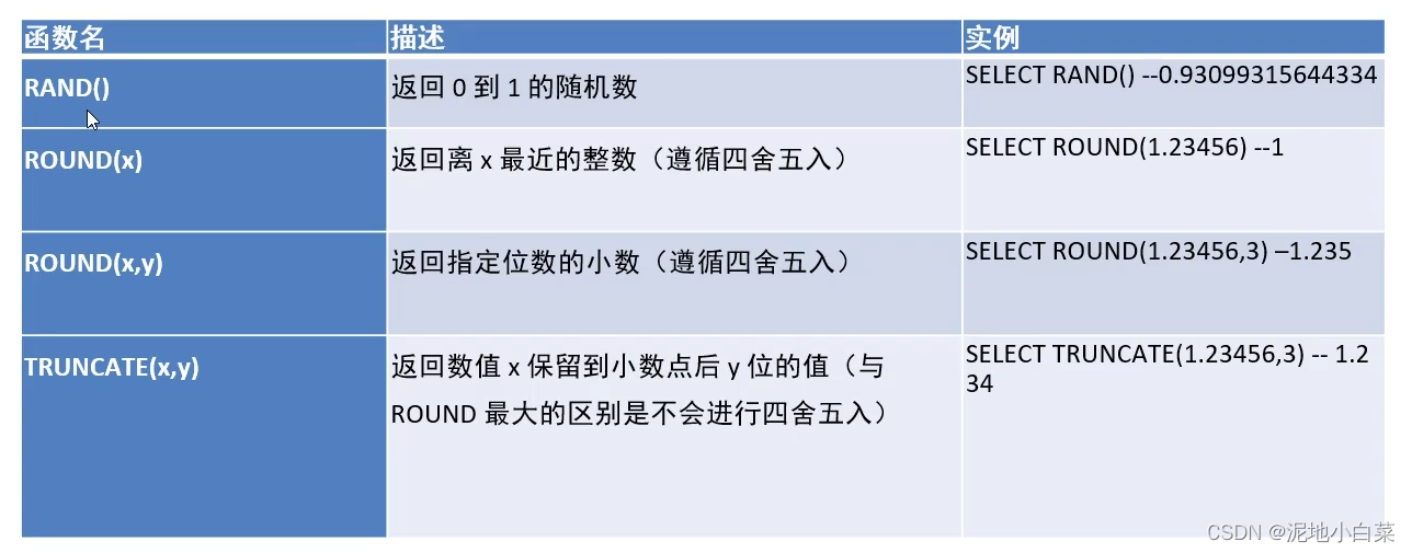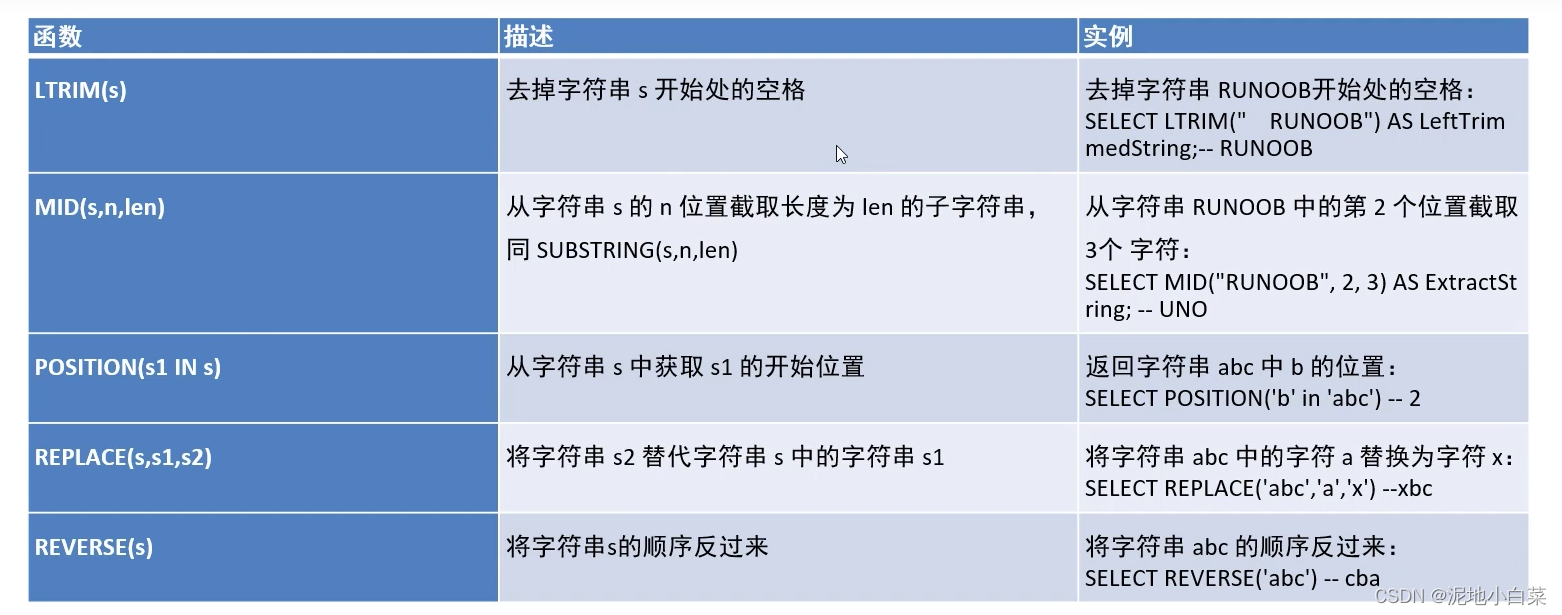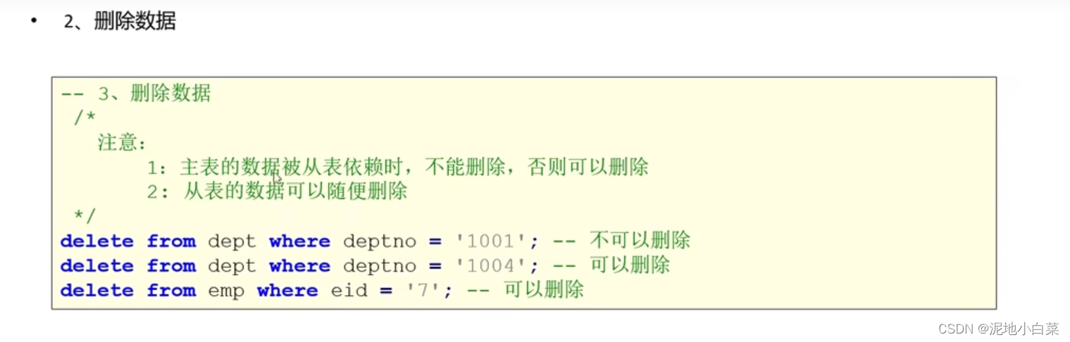 注意和之前的drop区分,drop适用范围是表和数据库而不涉及其中的数据内容,当需要删除内容时需要用到下面的两个函数
