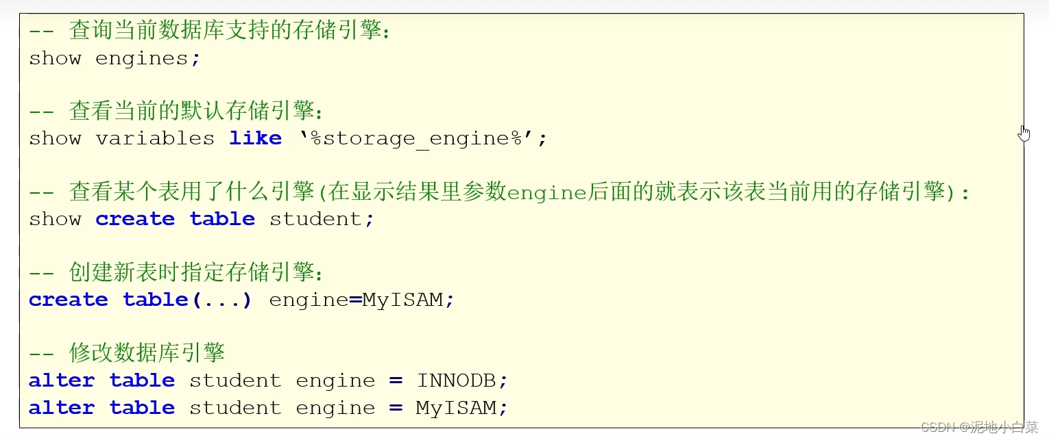 下面是关于MySQL存储引擎的一些操作: