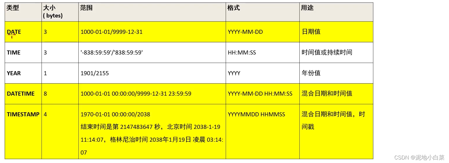 TIMESTAMP会涉及到时区,会自动获取当前时区时间