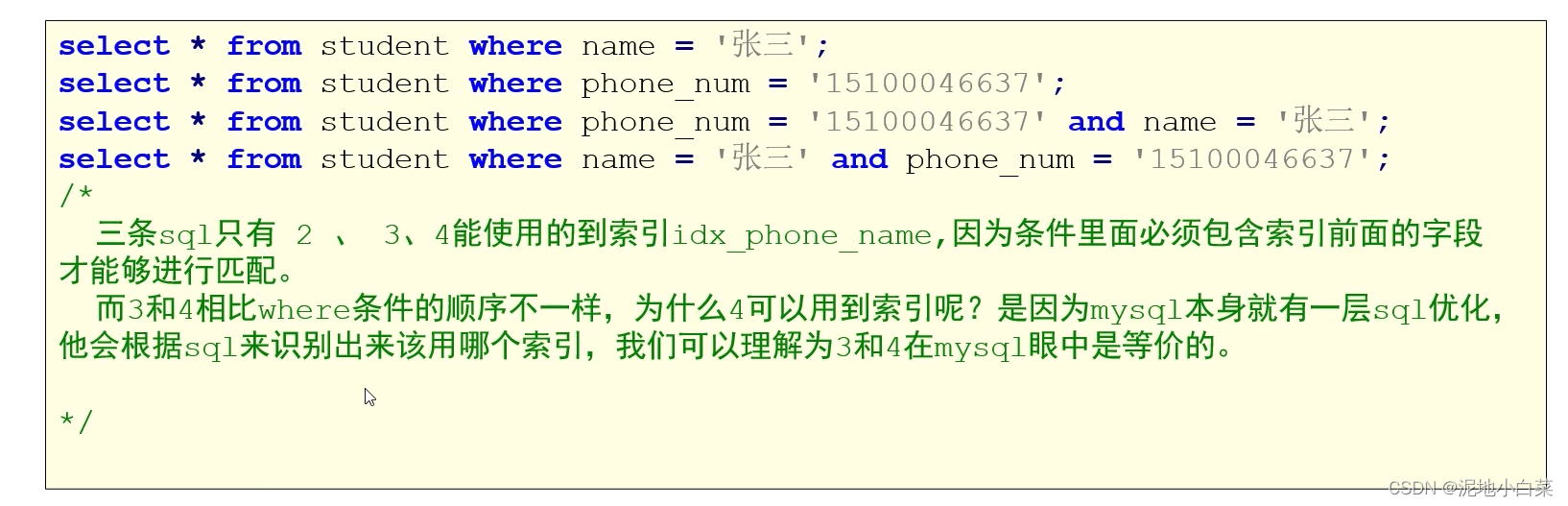3.重复数据多的字段不应设为索引(比如性别只有男和女,一般来说重复的数据超过百分之15就不该建索引)