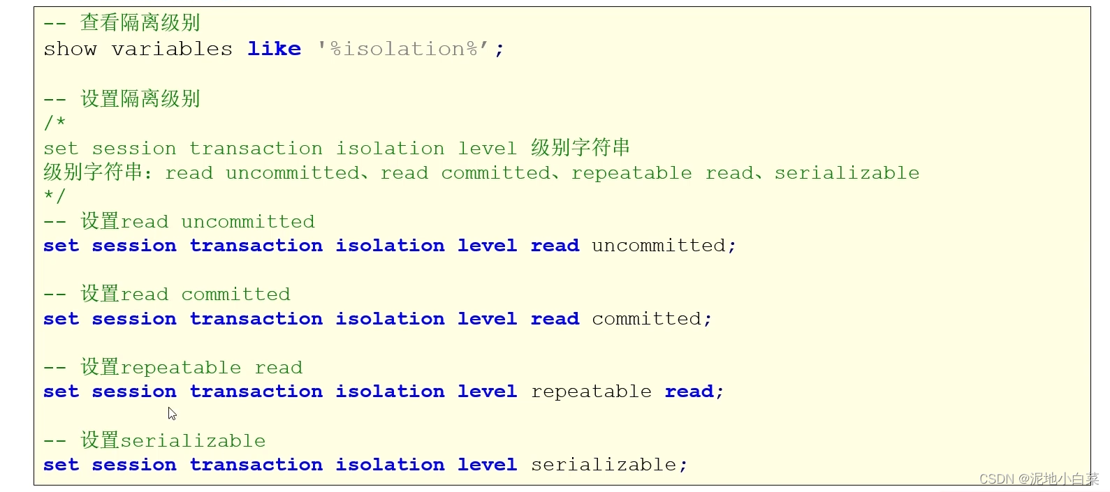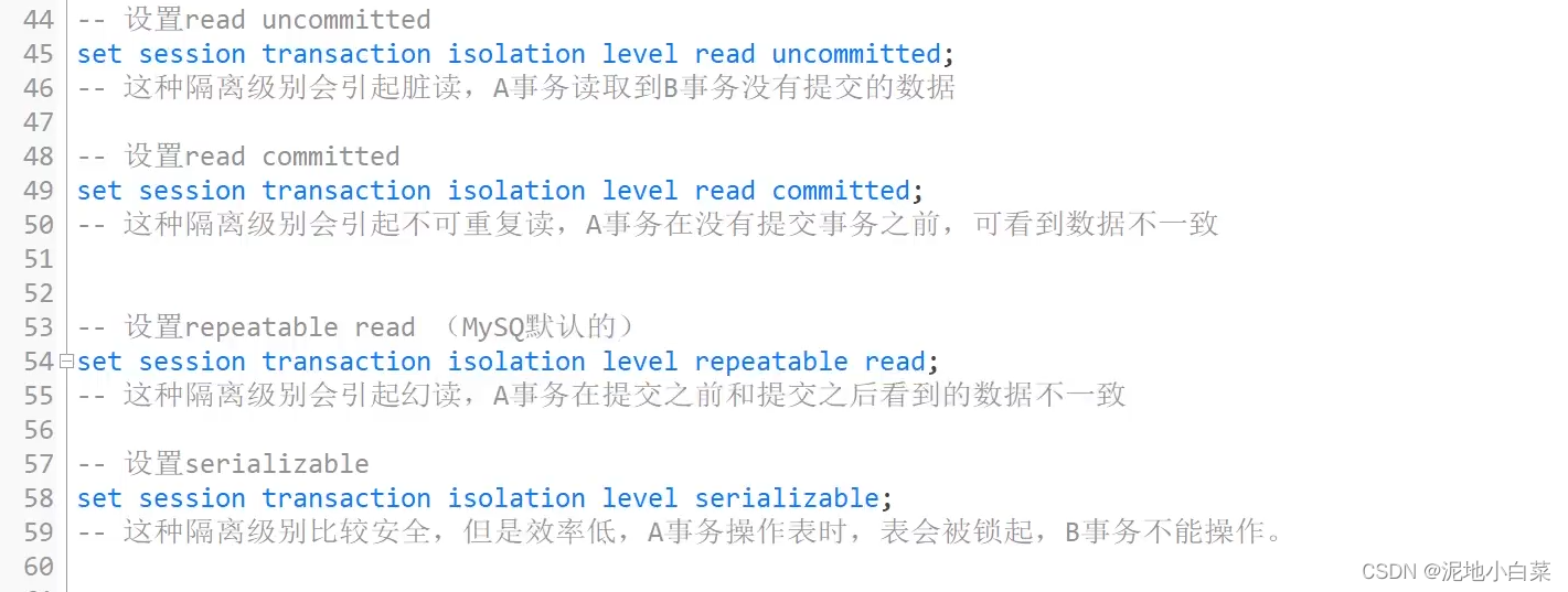下面是隔离级别涉及到的操作: