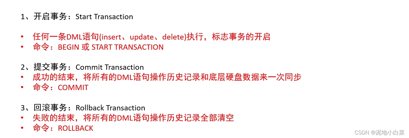MySQL的事务操作主要有以下三种: