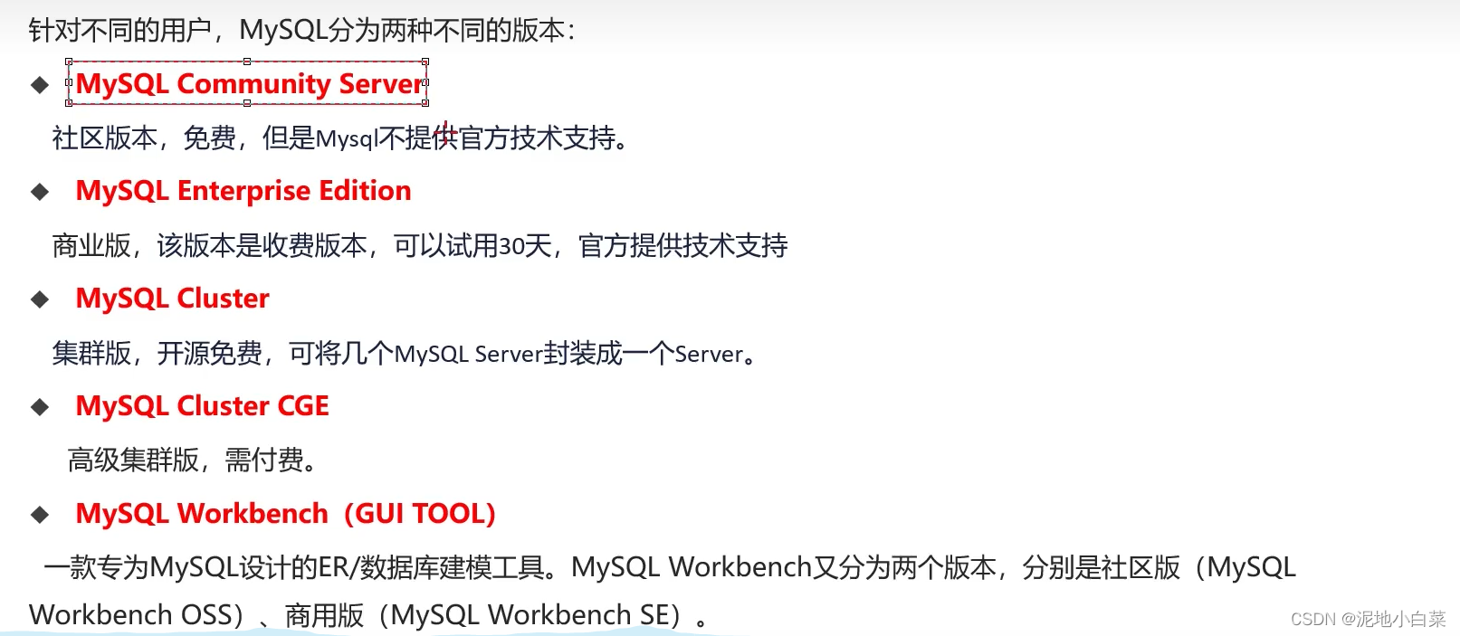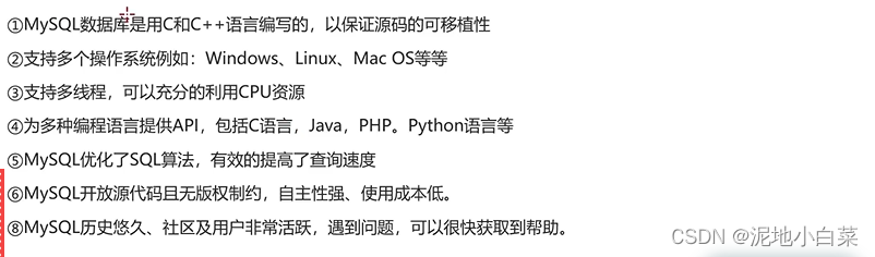 MySQL的特点: