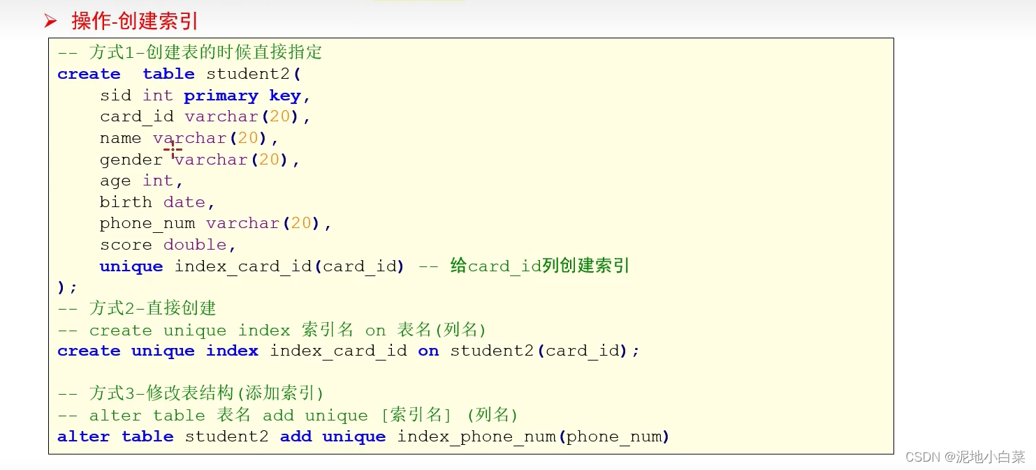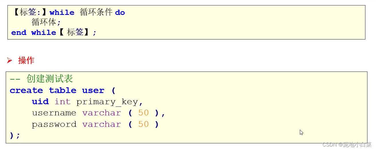 2.对表结构的常用操作-创建表