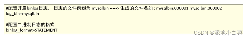 二进制日志,MySQL8.0默认已开启,低版本的MySQL的需要通过配置文件开启,并配置MySQL日志的格式