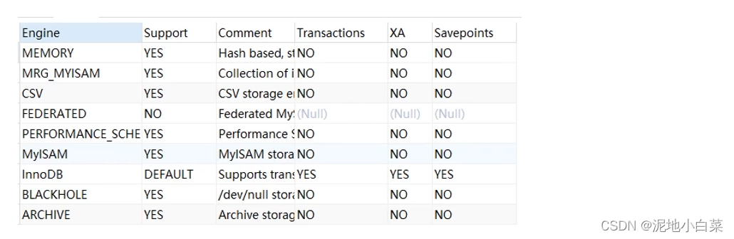 4.可以使用 show engines 命令 可以查看MySQL的所有执行引擎