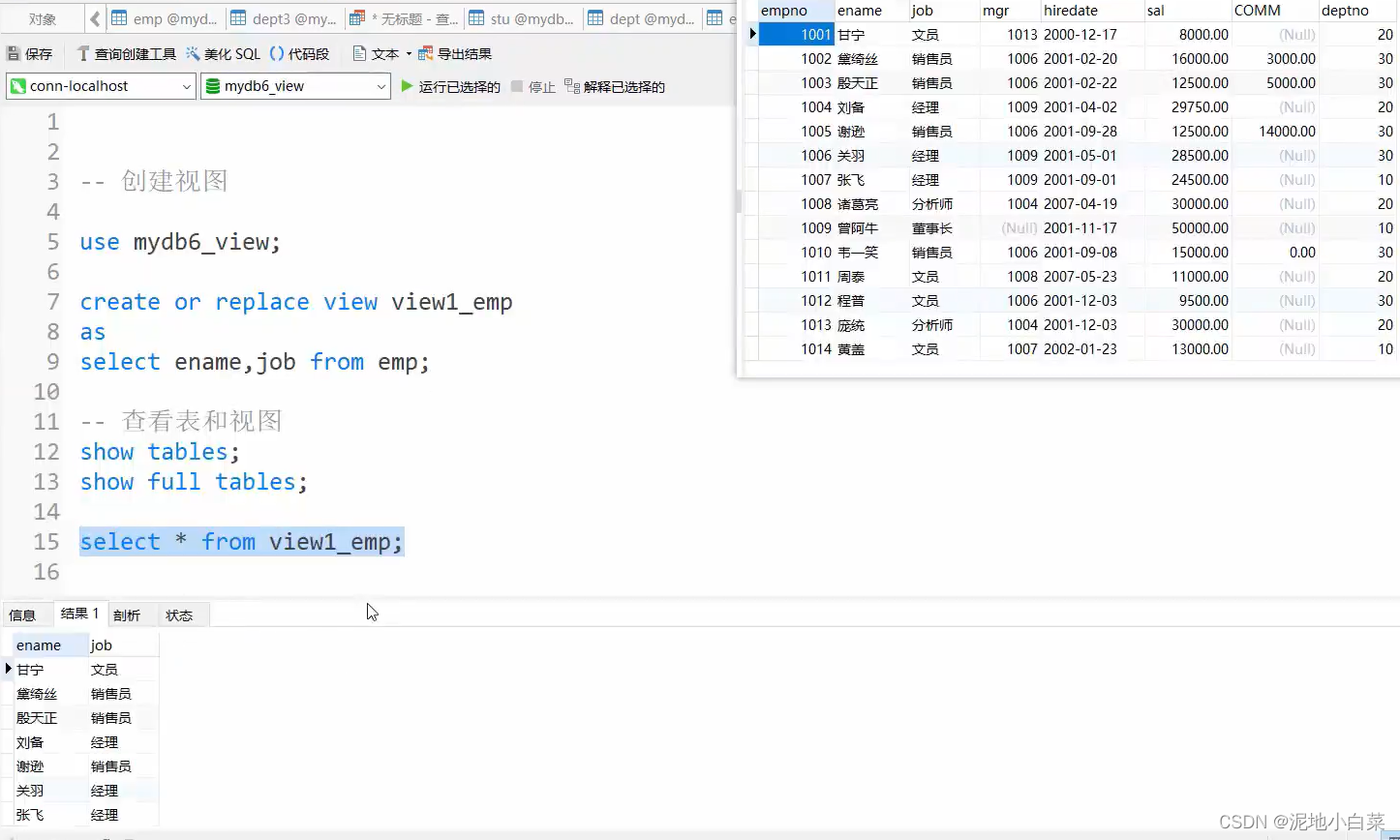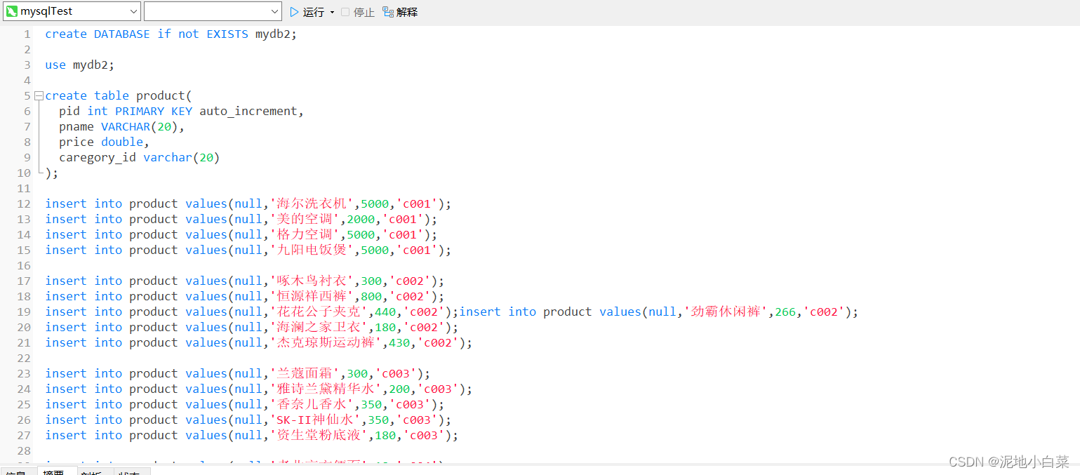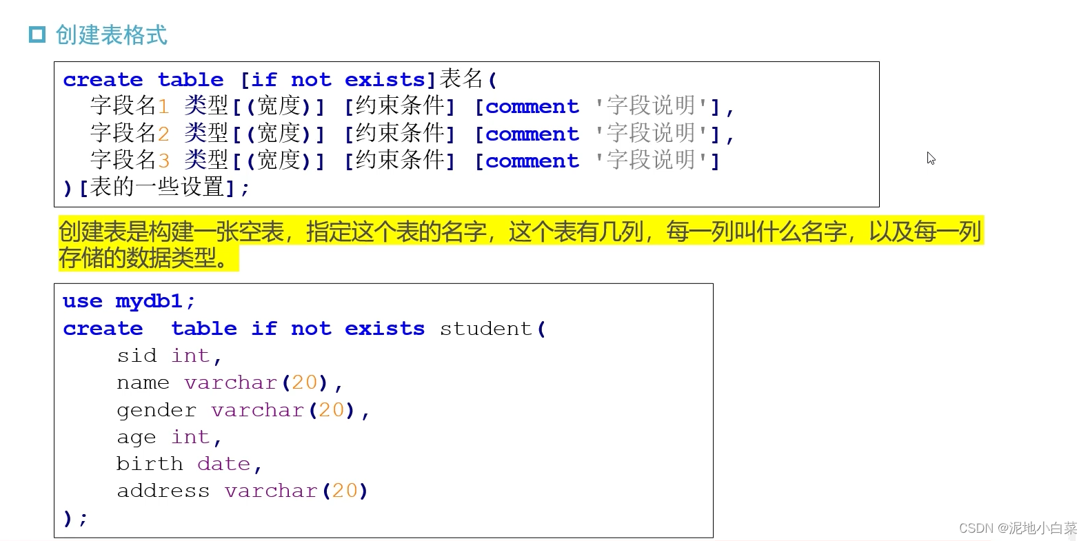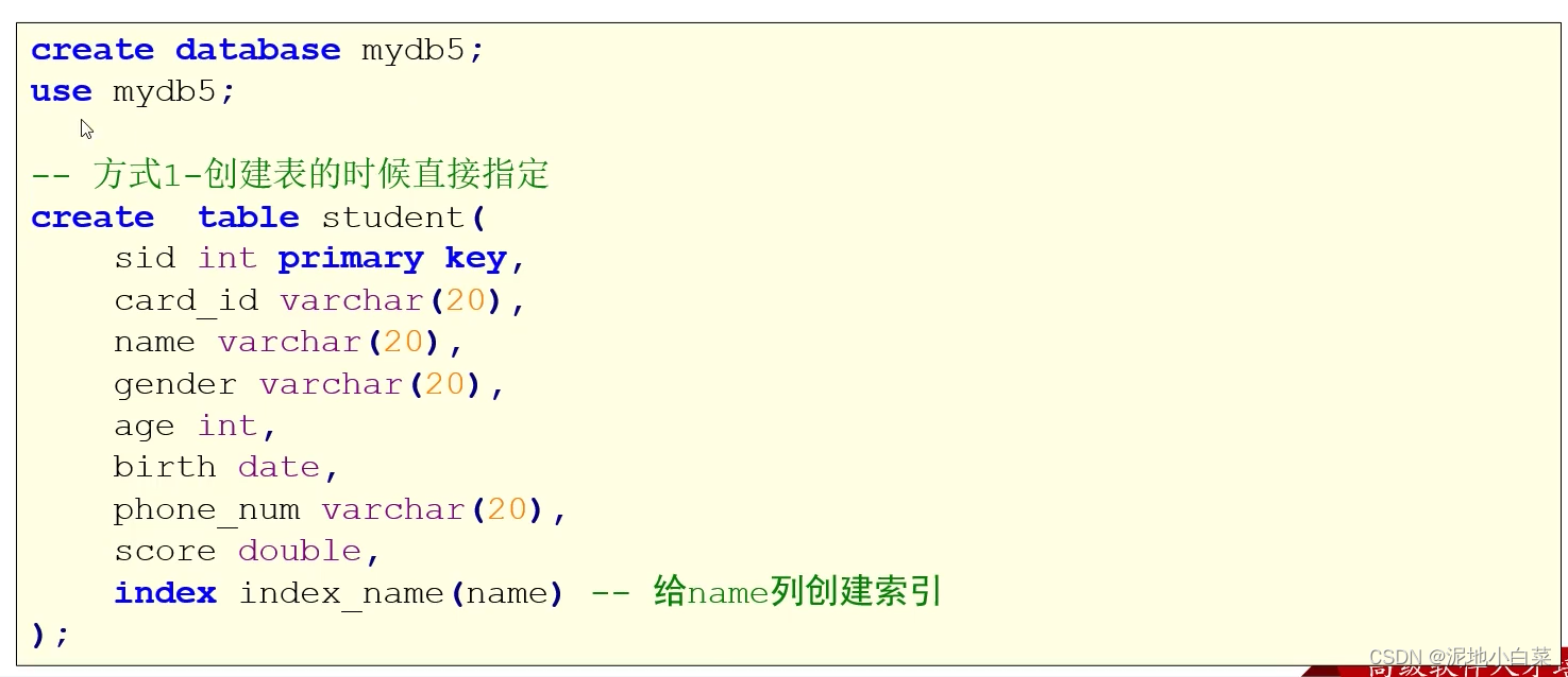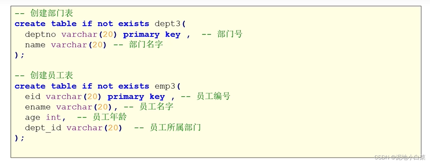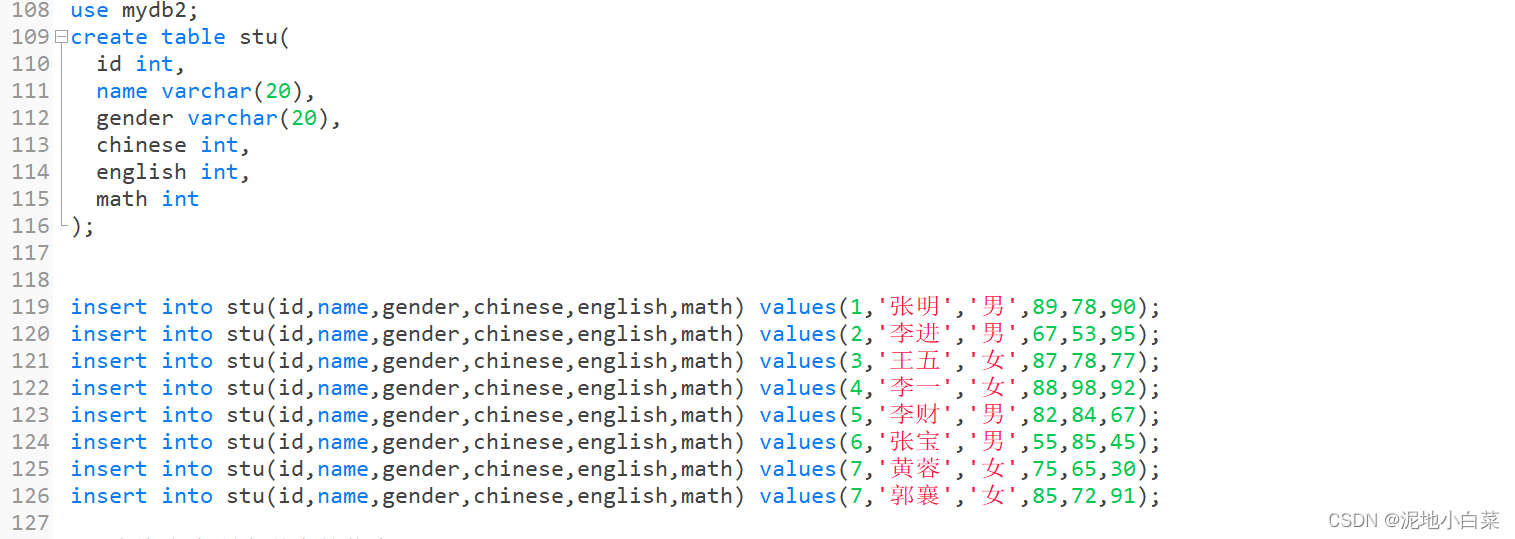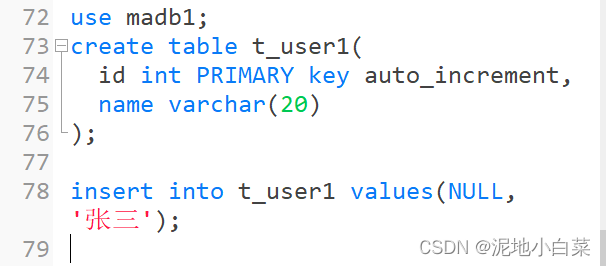 注意第一行的use的使用,创建表是在指定数据库内进行的