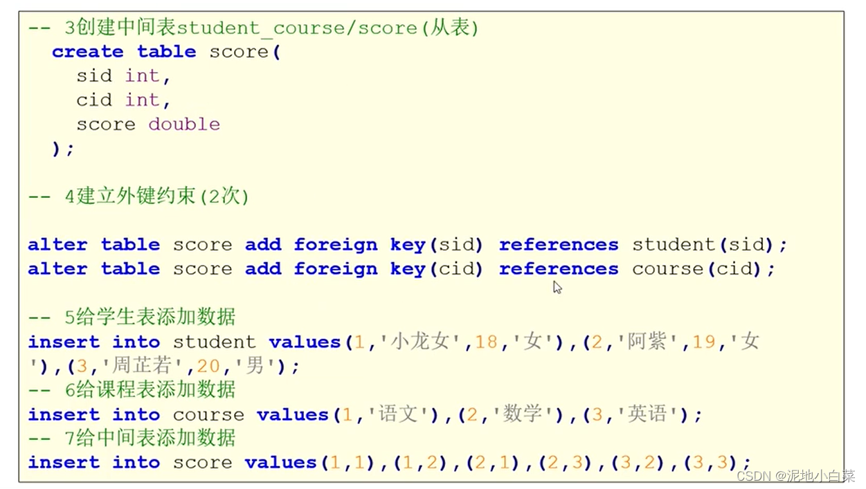 关键字: 1.插入insert 2.删除delete 3.更新upgrade