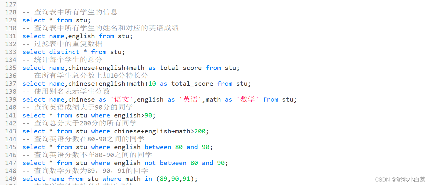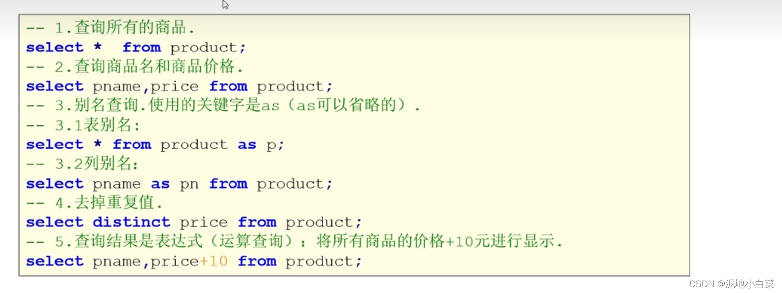 1.SQL对关键字的大小写不敏感