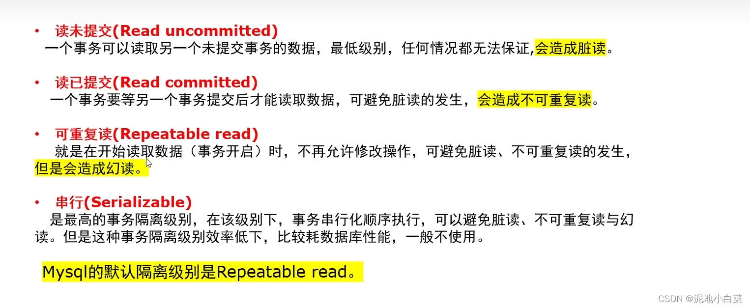 isolate,顾名思义就是将事务与另一个事务隔离开,为什么要隔离呢?如果一个事务正在操作的数据被另一个事务修改或者删除了,最后的执行结果可能无法到达预期,如果没有隔离性还会导致其他问题